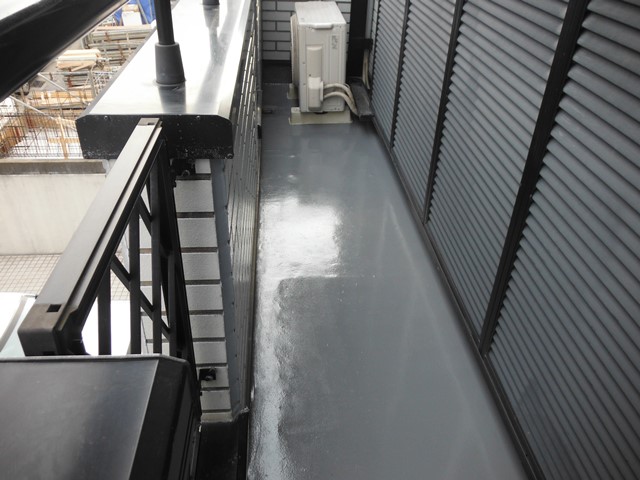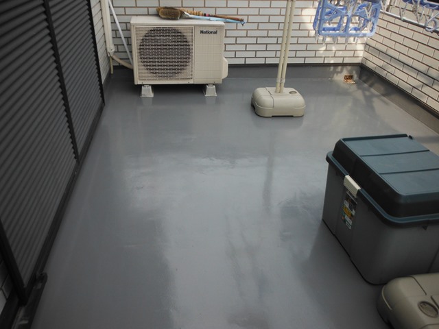 詳細:【作業内容】 ・施工前にベランダ全体を養生し、周辺設備や外壁を保護 ・既存防水層や劣化した塗膜・下地の撤去および高圧洗浄による清掃 ・下地補修(ひび割れや欠損部の補修、樹脂モルタル等による平滑処理) ・プライマー塗布による下地と防水材の密着性向上 ・防水層施工(例:FRP防水2プライ、防滑仕上げやウレタン密着工法等) ・トップコート塗布により防水層を保護し、耐候性・美観を確保 ・端末・立ち上がり・ドレンまわりのシーリング処理 ・最終確認後、清掃および廃材撤去を実施 ・全作業において周囲の養生と作業後の清掃・後片付けを実施