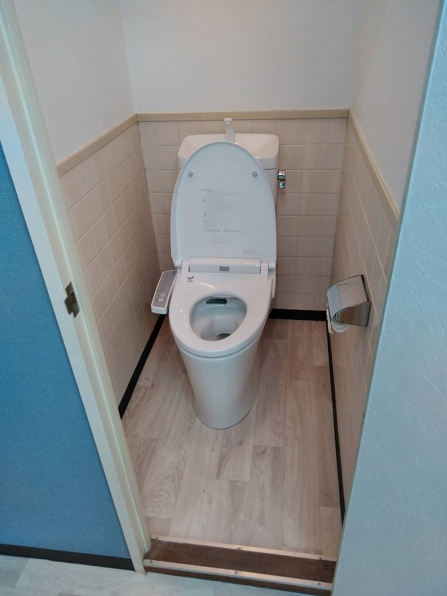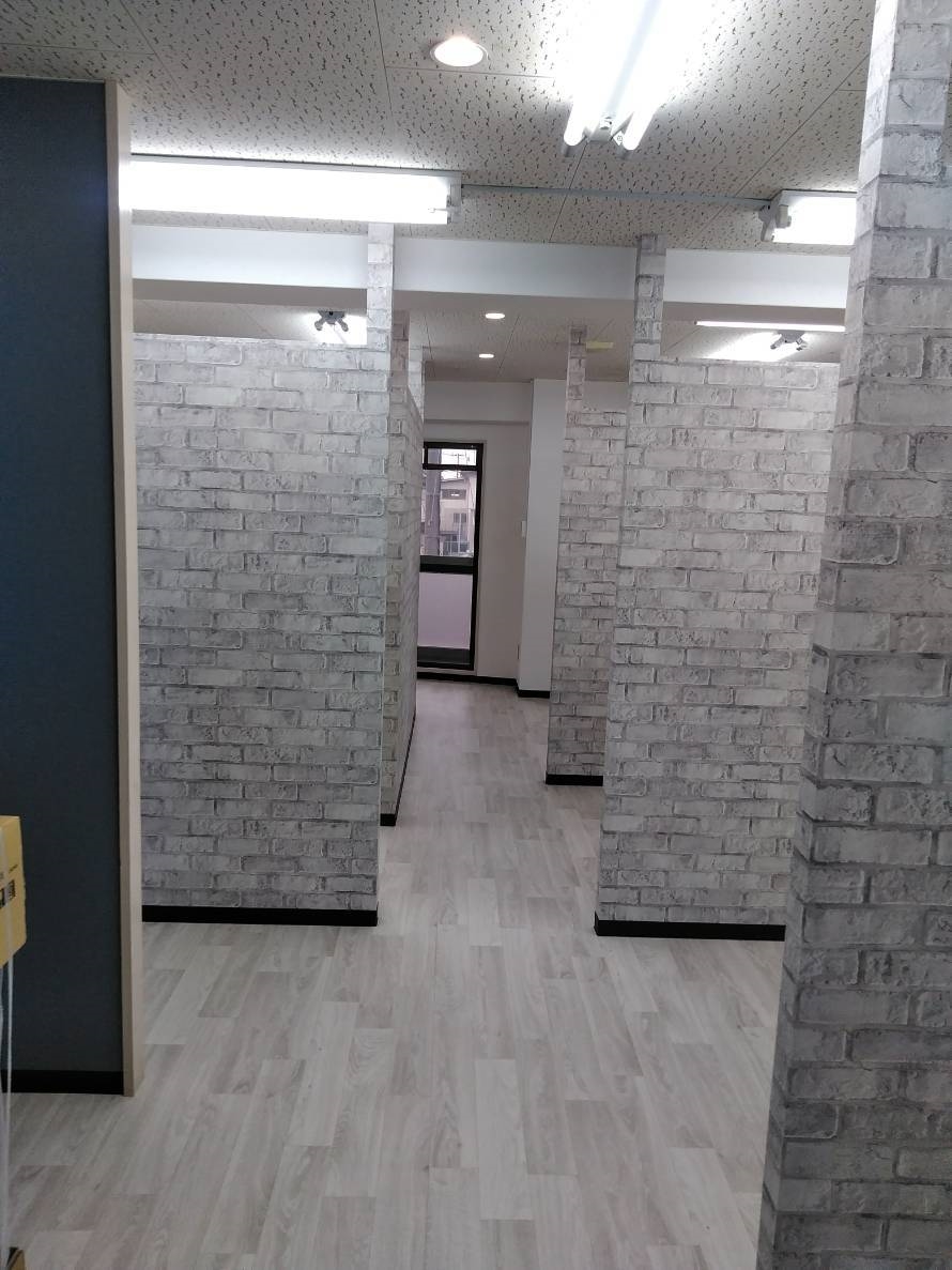 詳細:【作業内容】 ・新規間仕切り壁造作(7ヵ所/下地組立~PB貼り) ・クロス貼替(壁面:サンゲツSP2136・SP2132 約60㎡/間仕切り壁・アクセント壁:サンゲツFE1231・FE7465 約40㎡) ・ソフト巾木貼替(サンゲツCF4301 約80m) ・ハンガーパイプ設置(7箇所) ・カーテン設置(7箇所/取付金具含む) ・電気工事(配線・照明・スイッチ新設含む) ・ダウンライト取付(LED60W相当 昼白色 10台) ・エアコン工事(Panasonic製 1台・吊形/既設配管接続含む) ・トイレ交換(アメージュZフチレス便器+温水洗浄便座) ・洗面化粧台設置(サンワカンパニー製) ・給排水工事(1Fまでのドレン配管・排水新設含む) ・天井点検口新設および補修 ・床長尺シート貼り替え(共用廊下含む 約35㎡) ・サイン取付(切り文字仕様) ・簡易美装・清掃および仕上げ確認